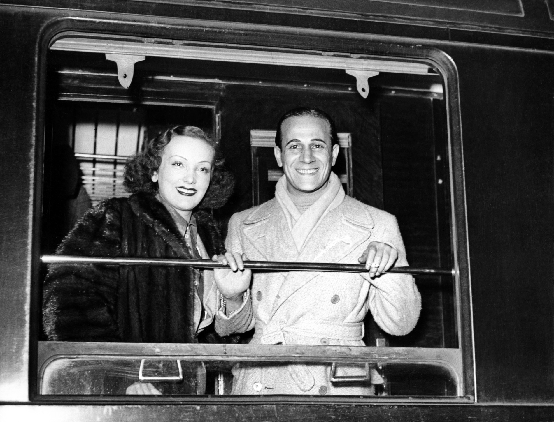 Ci-dessus et ci-contre : Tino Rossi embarque dans le train, direction, les USA. Mireille Balin étant montée à bord avant lui.