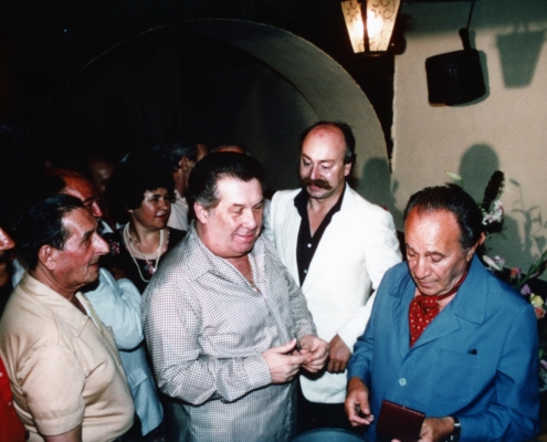 Ci-dessus : Tino Rossi en vacances à Ajaccio, en visite chez Antoine Bonelli dans son cabaret Au Son des Guitares, visiblement fier d’accueillir Tino en ses murs.