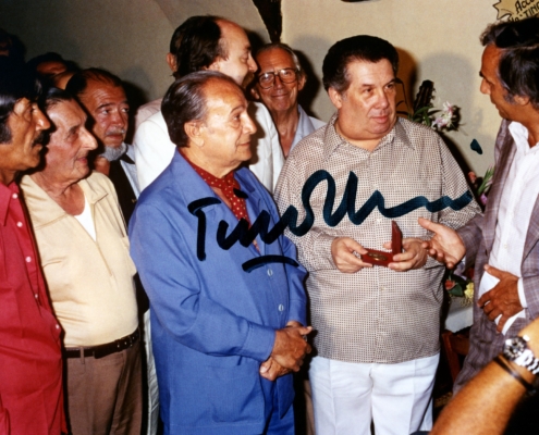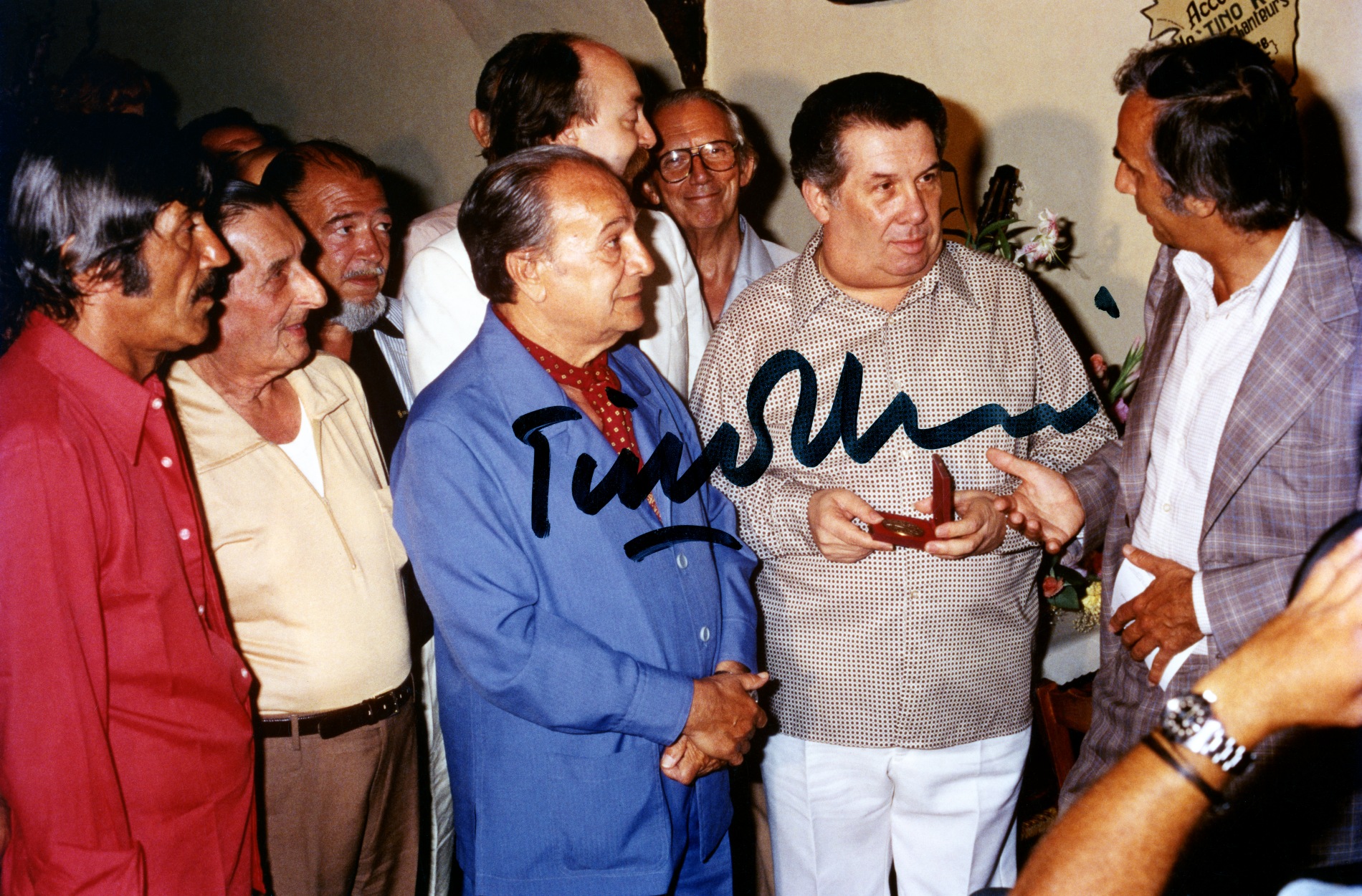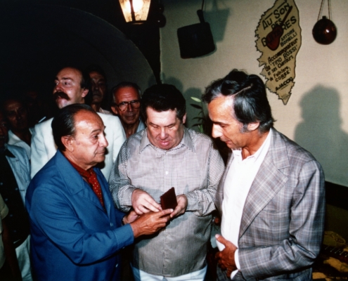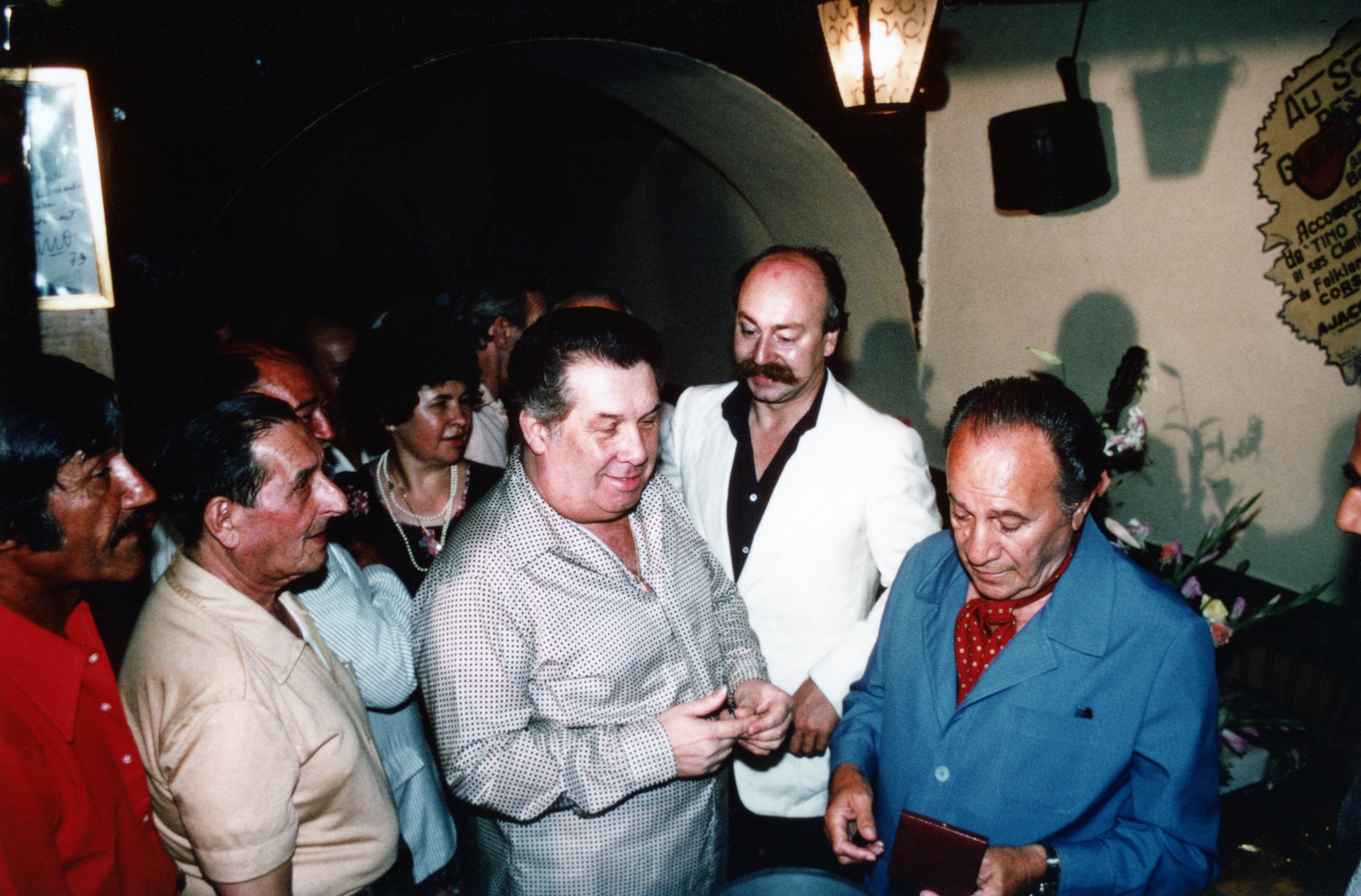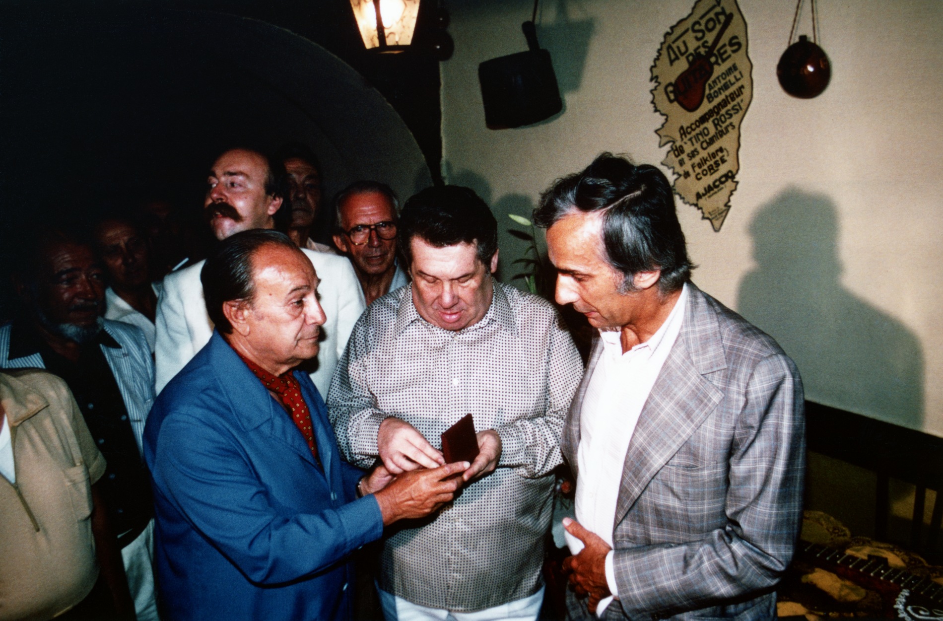 - Tino Rossi, qui arrive dans la Renault 5 de son fils, remet officiellement à Antoine Bonelli la Médaille de Bronze de la SACEM.