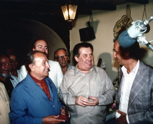- Le 29 avril 1980, Tino Rossi fête son anniversaire aux Studios EMI à Boulogne-Billancourt, entouré par l’équipe Pathé-Marconi.