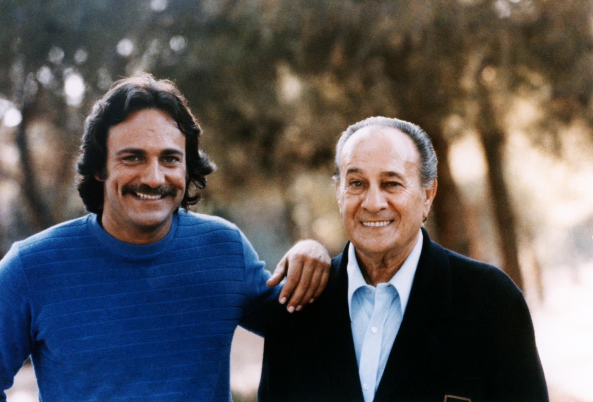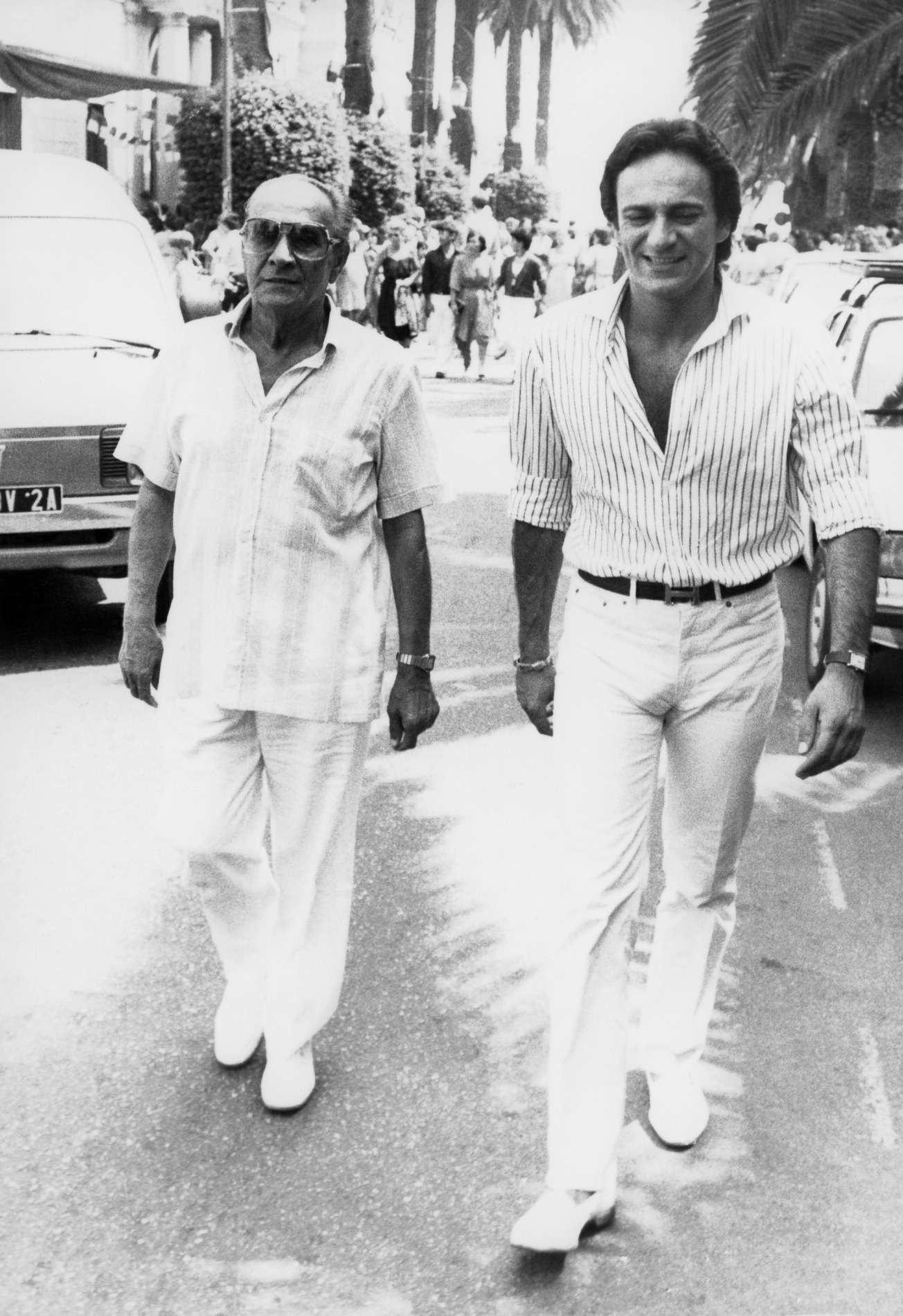 Ci-dessus : Tino Rossi et son fils Laurent dans les rues d’Ajaccio, en matinée.