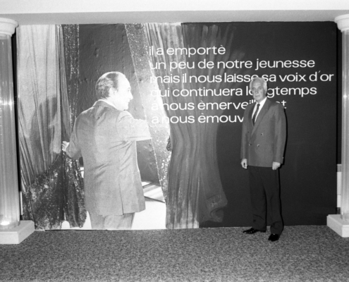 Ci-dessus : affiche annonçant l’Hommage à Tino Rossi appelé à se dérouler du 27 avril au 11 mai 1985.