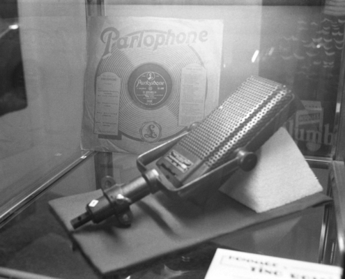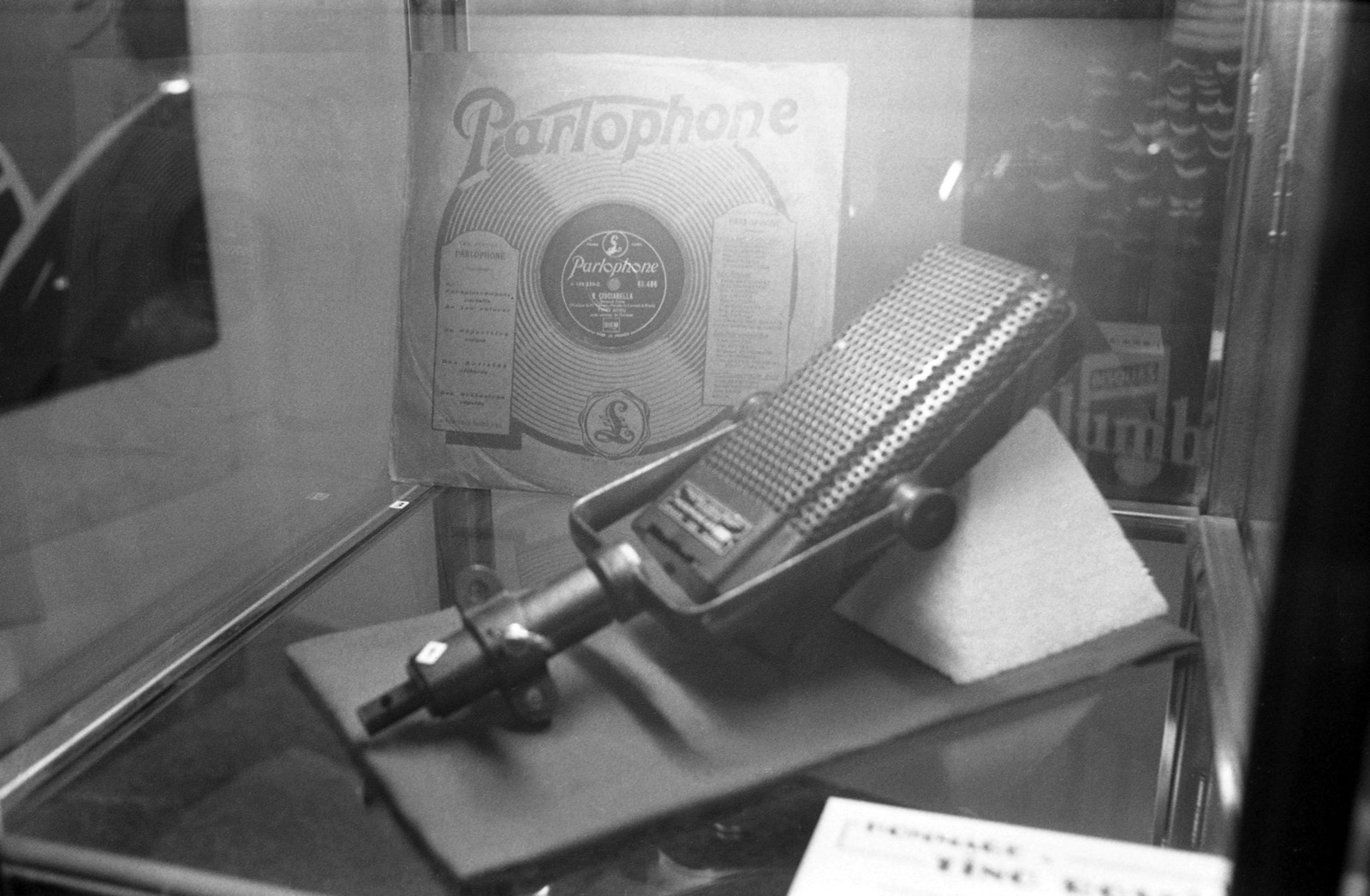 - cliché A15 : ancien microphone et premier disque commercialisé de Tino Rossi, par la firme Parlophone en Mars 1933.