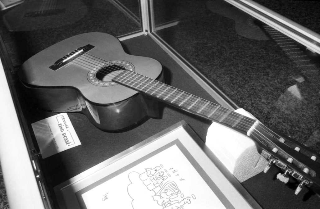 - Beaucoup d’objets personnels, de pièces uniques et/ou fort rares y sont exposés en provenance de la famille Rossi, du Club Tino Rossi et de membres éminents.