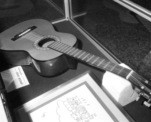 - cliché A32 : une guitare sèche utilisée pour la revue Cinquante ans d’Amour, au Casino de Paris 82′.
