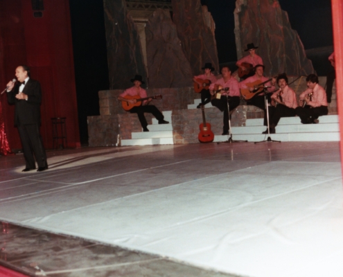 Ci-dessus : Final du Tour de Chant du 13 novembre 1982. Le public est comblé, Tino est heureux et ceci se voit ; et même les musiciens sont contents : carton plein pour Tino, comme d’habitude ! (coll. C. R-V.)