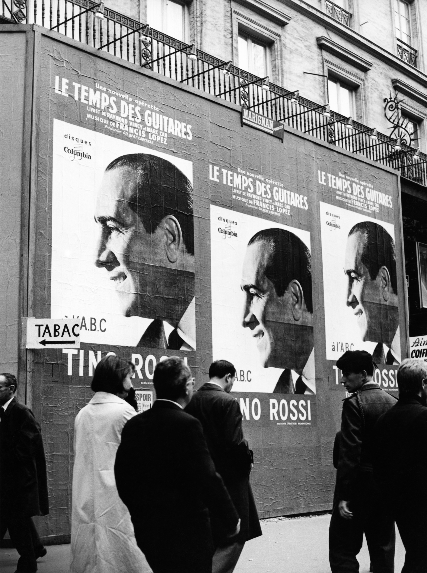 Ci-dessus : panneau publicitaire pour l’opérette Le Temps des Guitares dans une rue de Paris.