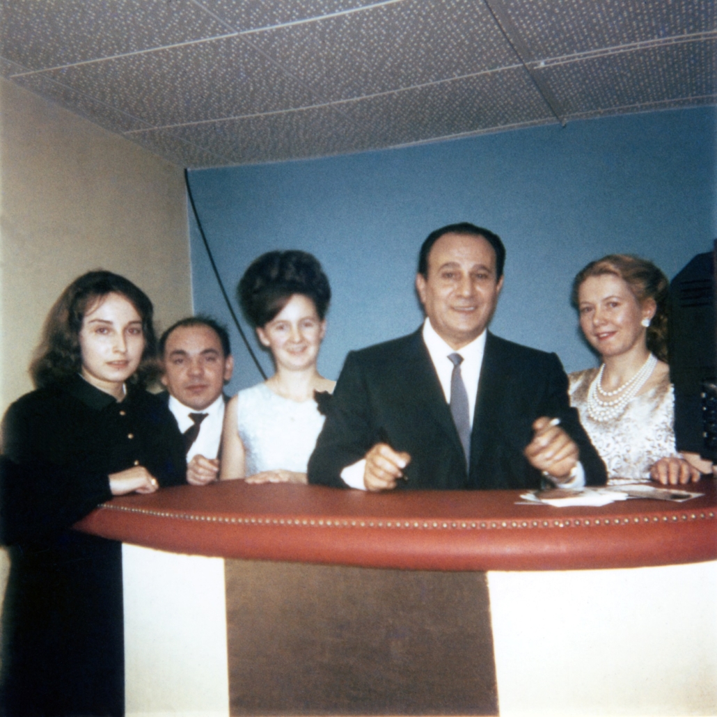 - de g-à-d : Roger Debecker (baryton), Michèle Auber, Tino Rossi, Josette Favey, Jane Francelle (ou Édith Culot), Christian Andriani.